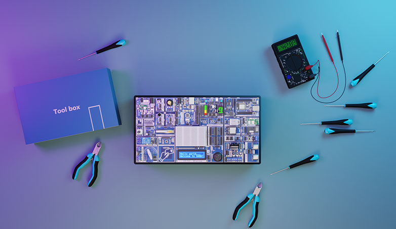 Образовательный набор собранный на одной печатной плате. Предназначен для обучения электронике, робототехнике и для изучения программирования контролеров, а так же интернету вещей.